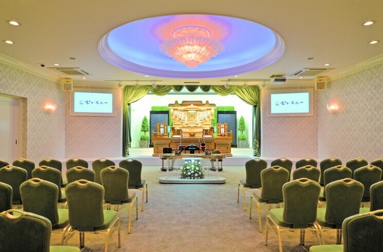 川口市にある、弊社セレモニーの直営葬儀式場です。仏式、神式、キリスト式、音楽葬、家族葬、火葬式などあらゆる形式に対応しております。また、川口市の市民葬儀制度にも対応しております。