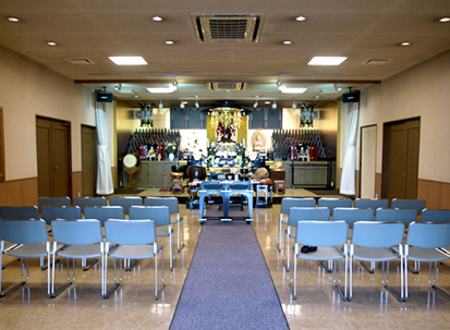 さて、宝性寺会館は2ホールあり、本堂では300名様規模のご会葬も可能となっておりますが、家族葬や小規模葬には「瑠璃光殿」もご利用いただけます。