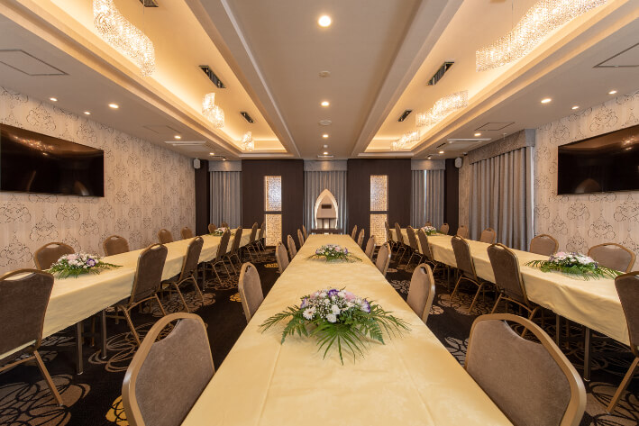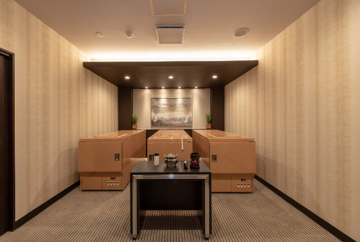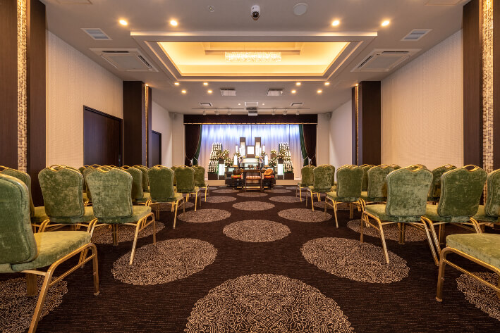 - あらゆる形式のご葬儀に対応できる式場が1つ、家族葬式場が1つございます。