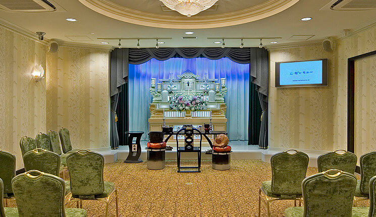 ご葬儀では仏式、神式、キリスト式、友人葬、無宗教葬、音楽葬、家族葬、火葬式などあらゆる形式に対応しております。葬儀式場の規模は最大100名のご会葬者様に対応可能でございます。式場はあまり大きくありませんが、小規模葬や家族葬をご希望のお客様にご満足いただける設計と致しております。葬儀式場には遺族控え室をご用意しており仮眠をお取りになることも可能でございます。