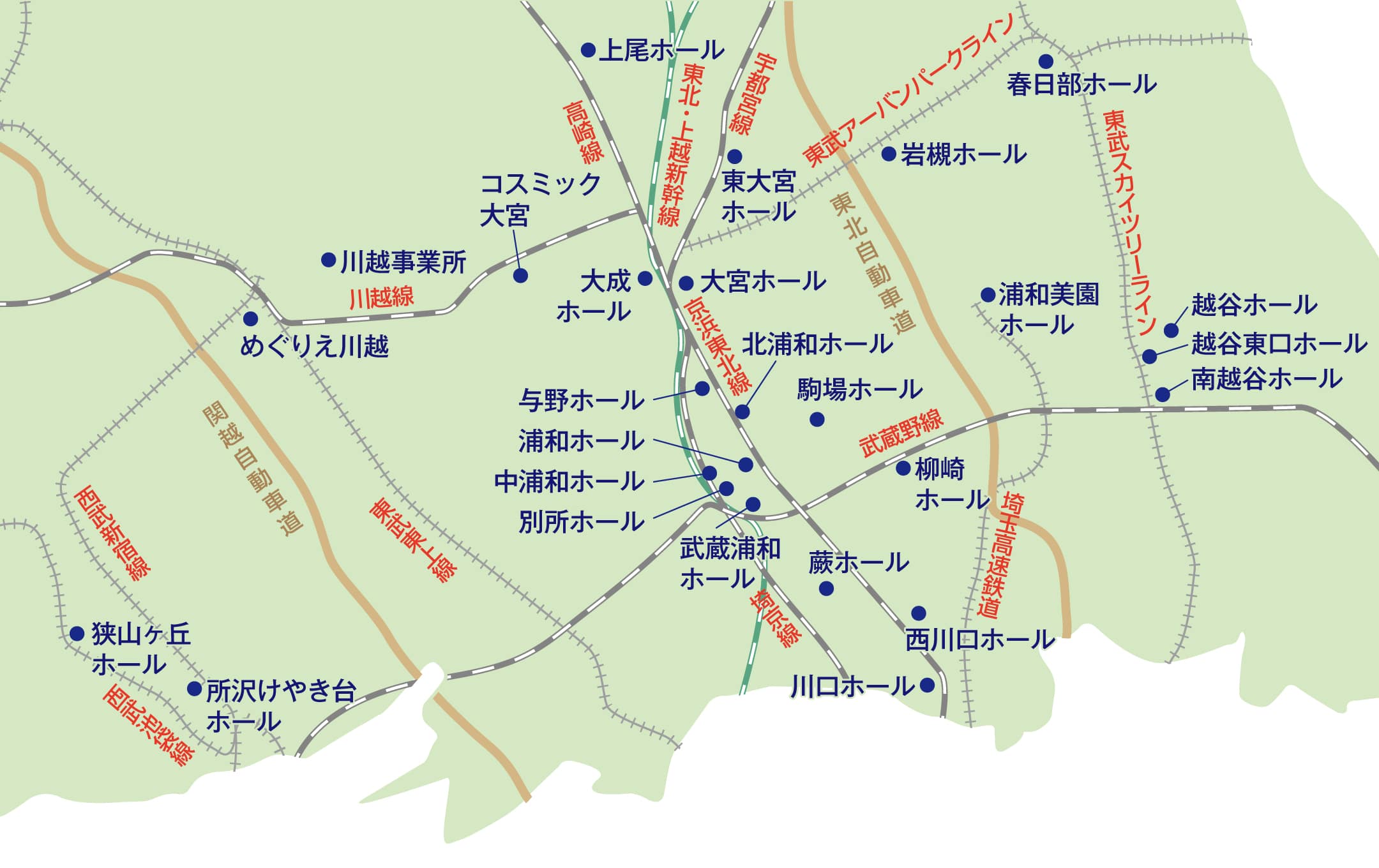 画像をクリックすると各ホールの詳細ページが開きます。来館ご希望のホールをお選びになり、本ページのご予約受付フォームよりお申し込みください。